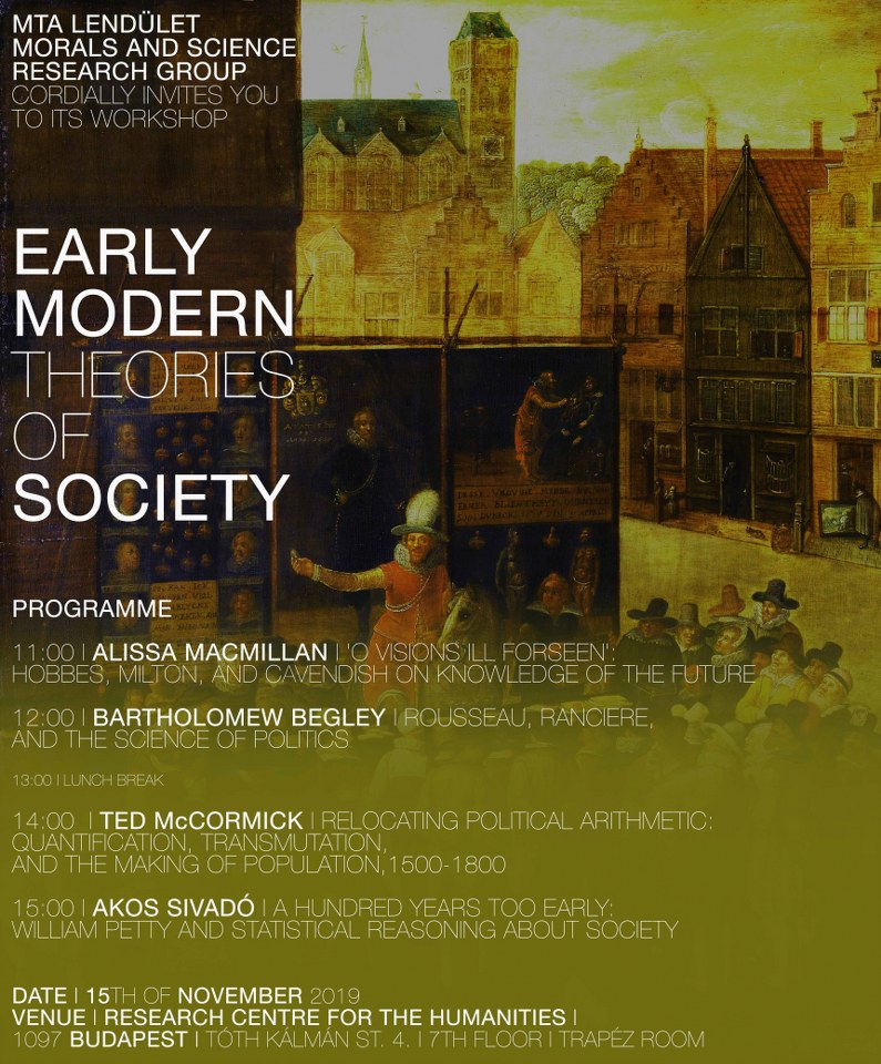 15:00 - 16:00: Akos Sivado: "A Hundred Years Too Early: William Petty and Statistical Reasoning about Society"